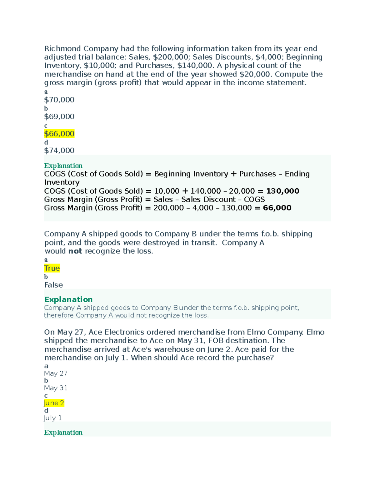 Chapter 5 Midterm Review Richmond Company Had The Following Information Taken From Its Year End Studocu